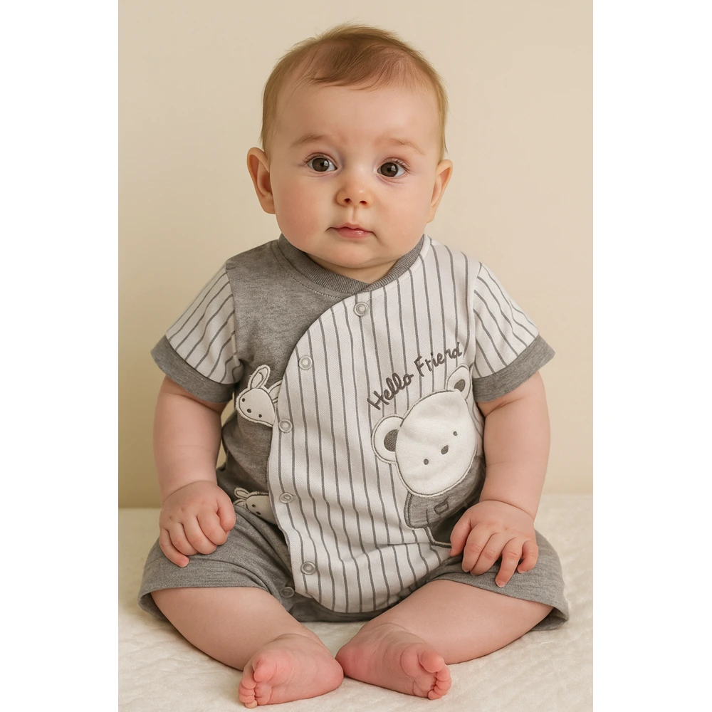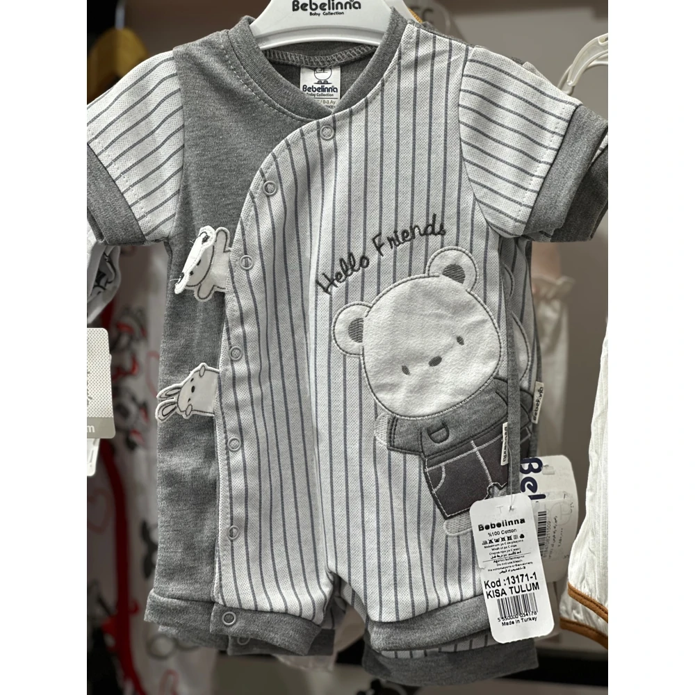 این لباس نوزادی برند ترک Bebelinna با طراحی خرس و نوشتهی Hello Friend از جنس ۱۰۰٪ پنبه تهیه شده و مناسب پوست حساس نوزاد شماست.»