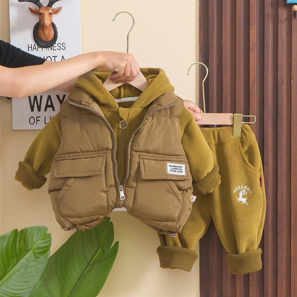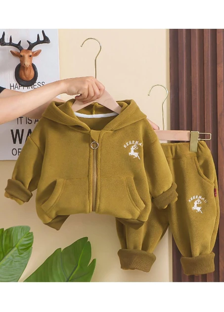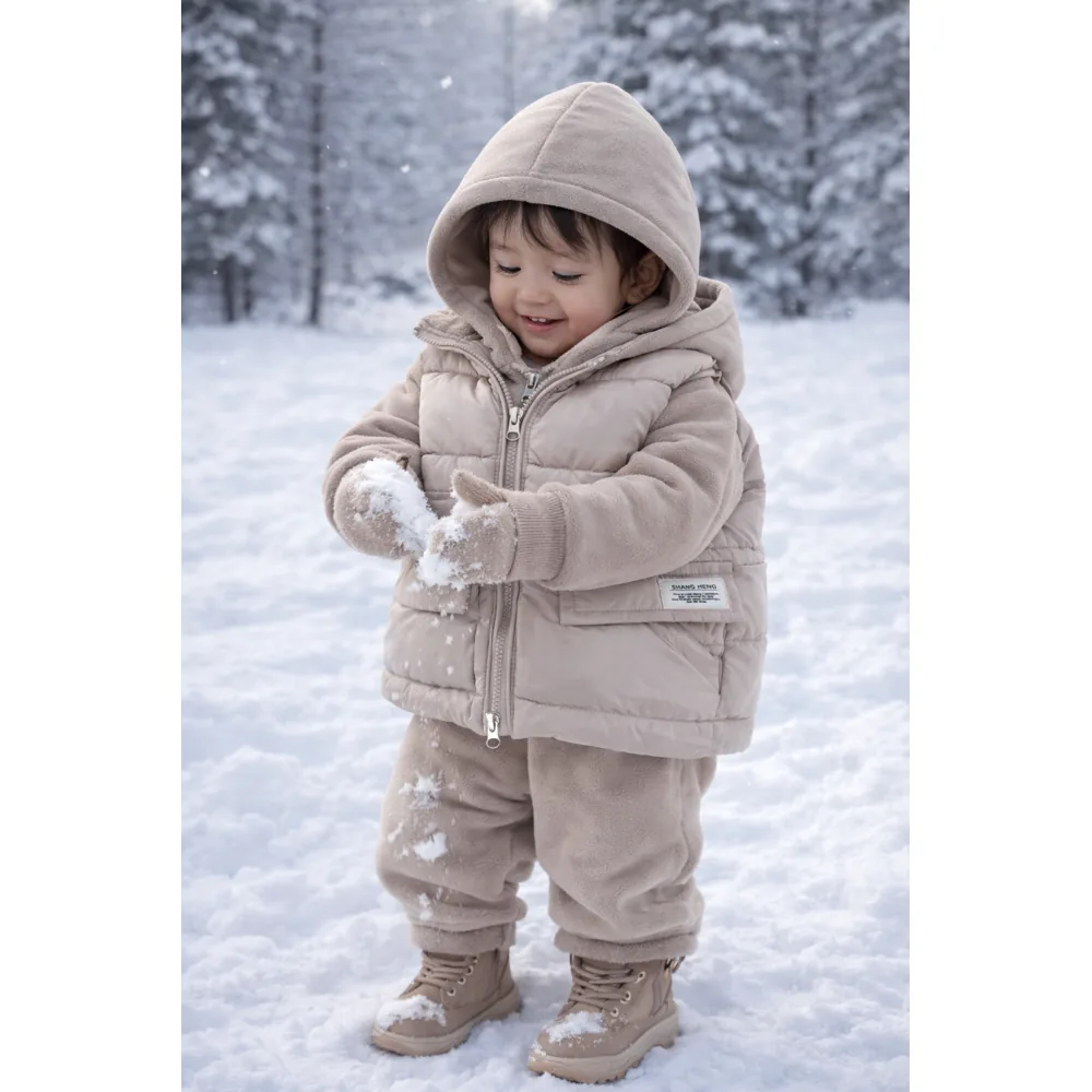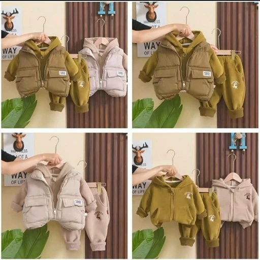 سه تیکه پافردار وارداتی اورجینال خزدار بسیار گرم هودی + شلوار و پافرجنس هودی و شلوار تدی ضخیم خزدار گرم و نرممناسب 1 تا تقریبا 5 سال