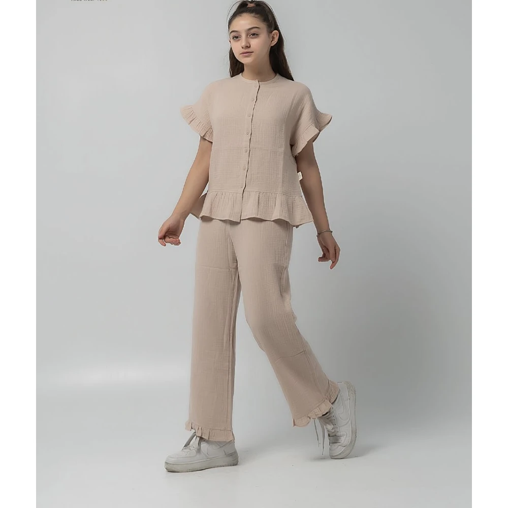 ست تابستانی کد ۱۸۸۸با طراحی راحت و پارچهی خنک نخ و پنبه، انتخابی عالی برای روزهای گرم سال.موجود در سه رنگ جذاب (کرم/گلبهی/نسکافه ای) و سایزبندی کامل از ۷ تا ۱۴ سال.این ست، هم راحتی کودک شما را فراهم میکند و هم ظاهر جذابی به استایل تابستانیشان میبخشد.